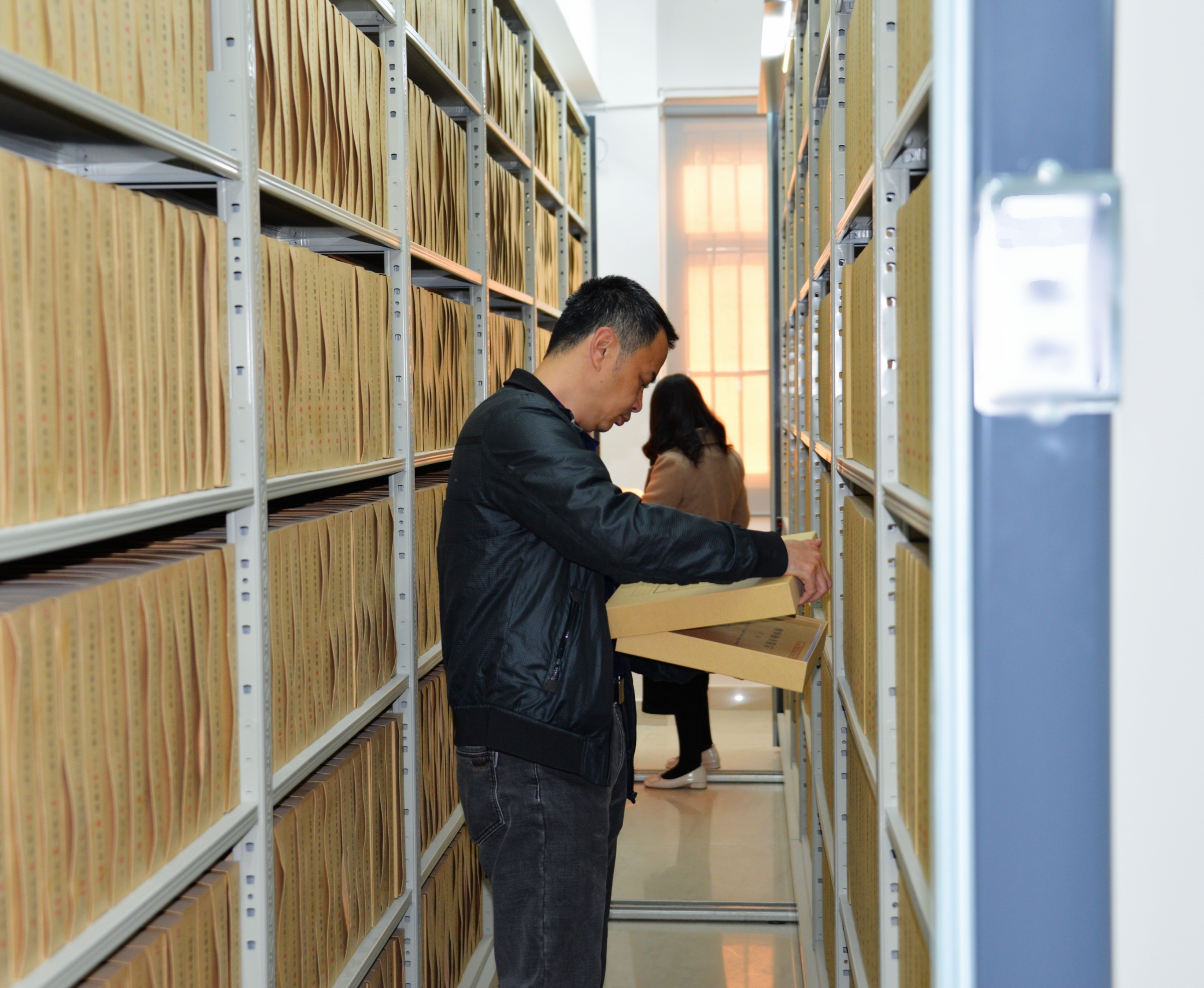 档案室里,干警仔细核对案件档案信息,确保档案内容准确无误、排列规范有序。