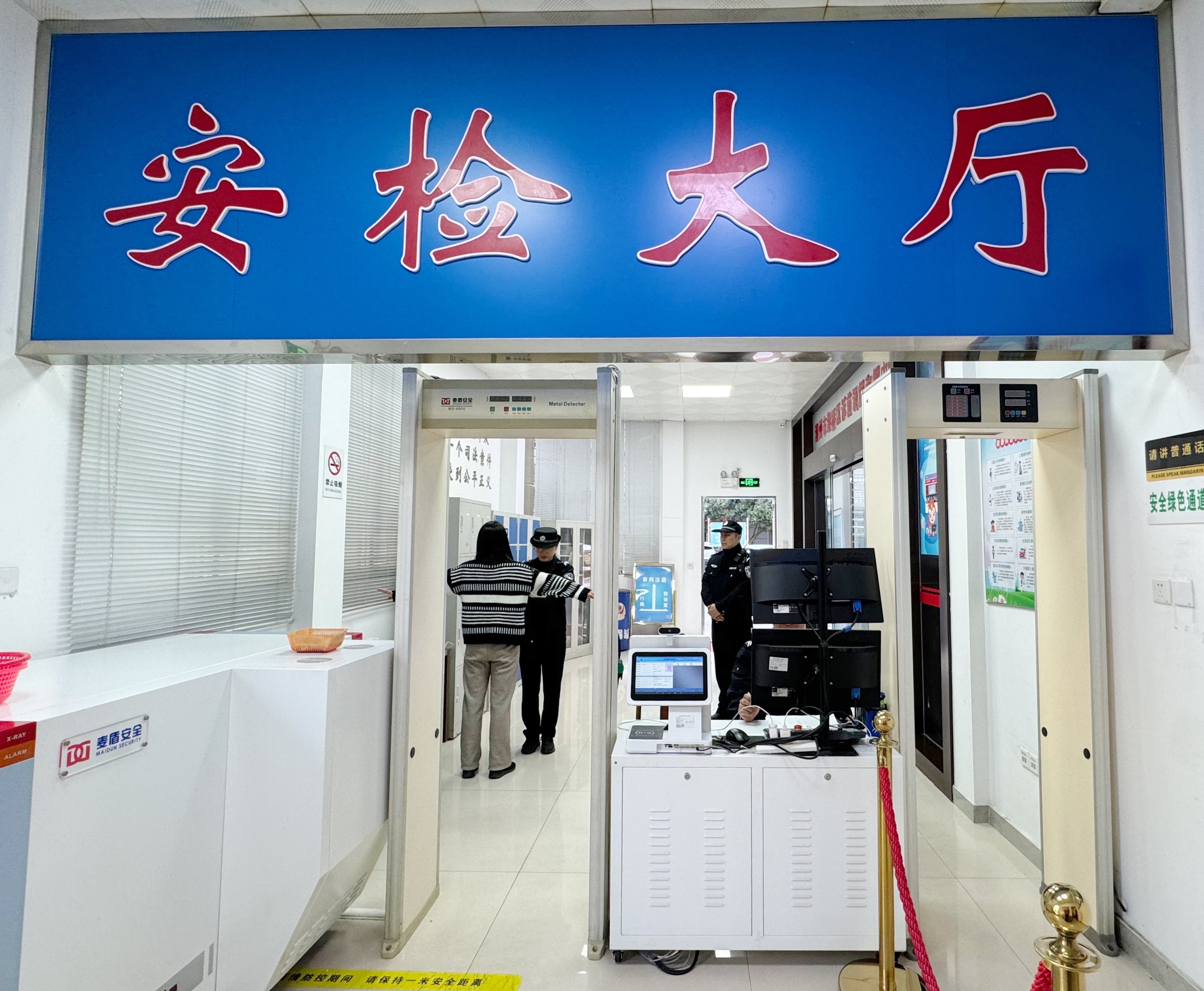法警队干警严守安检岗位,以高度的责任感维护法院安全秩序。