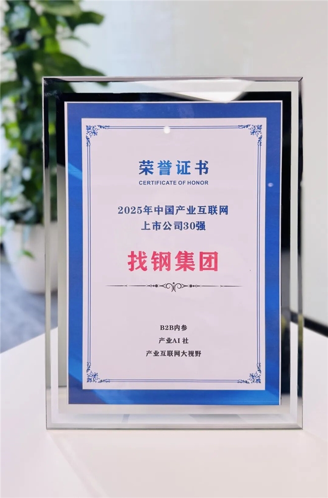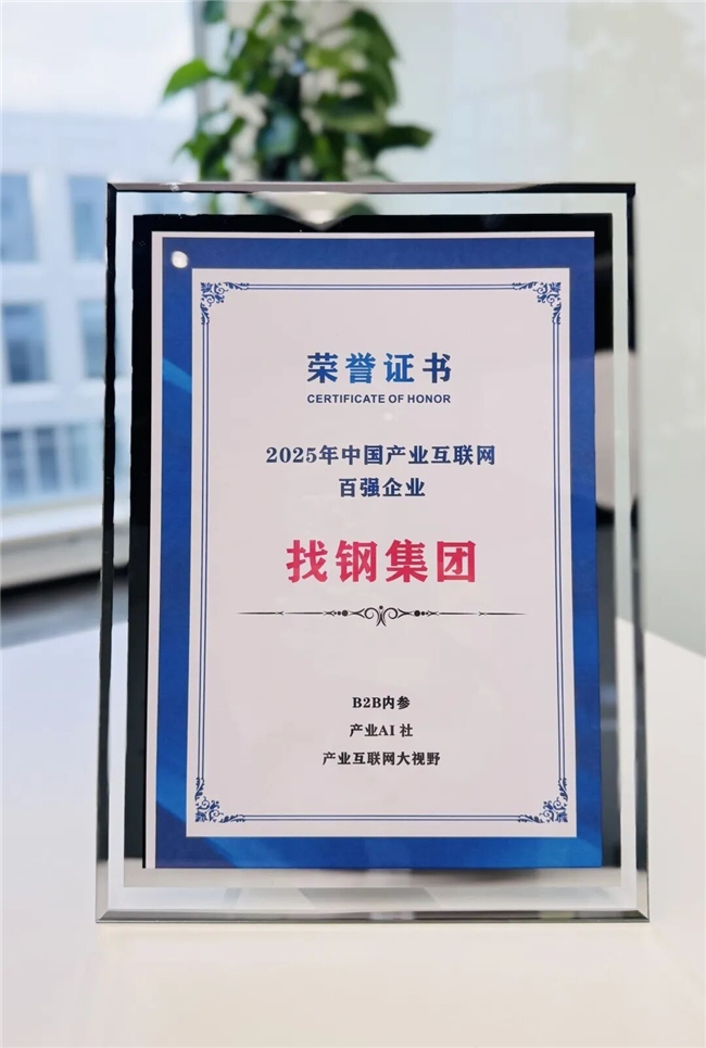 找钢网在中国物流与采购联合会主办的2025大宗商品国际化发展大会上,获得了中物联大宗商品流通分会颁发的“2025中国大宗商品现代流通优秀案例”。